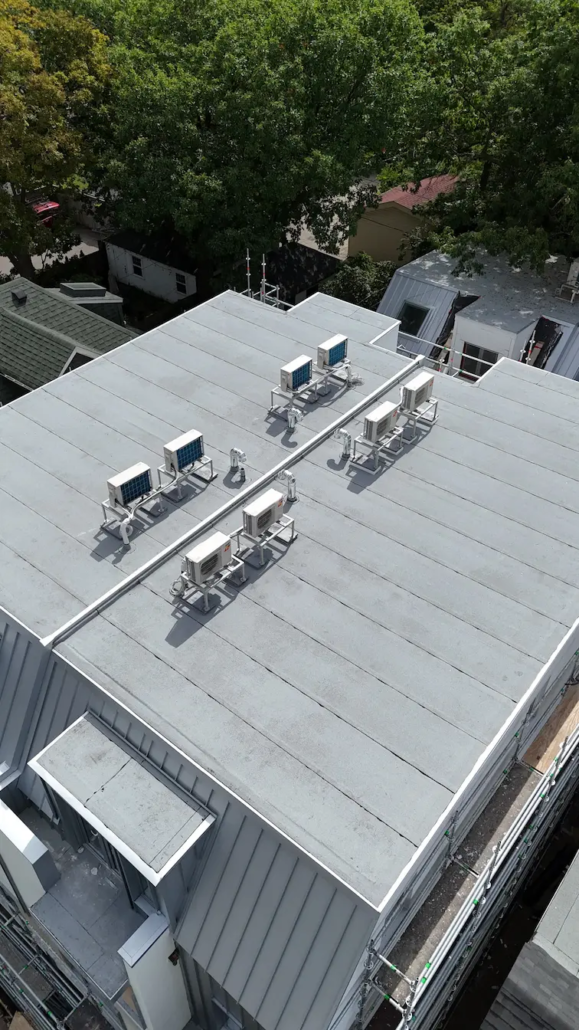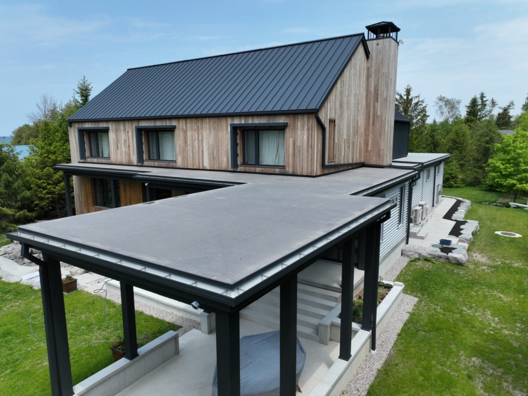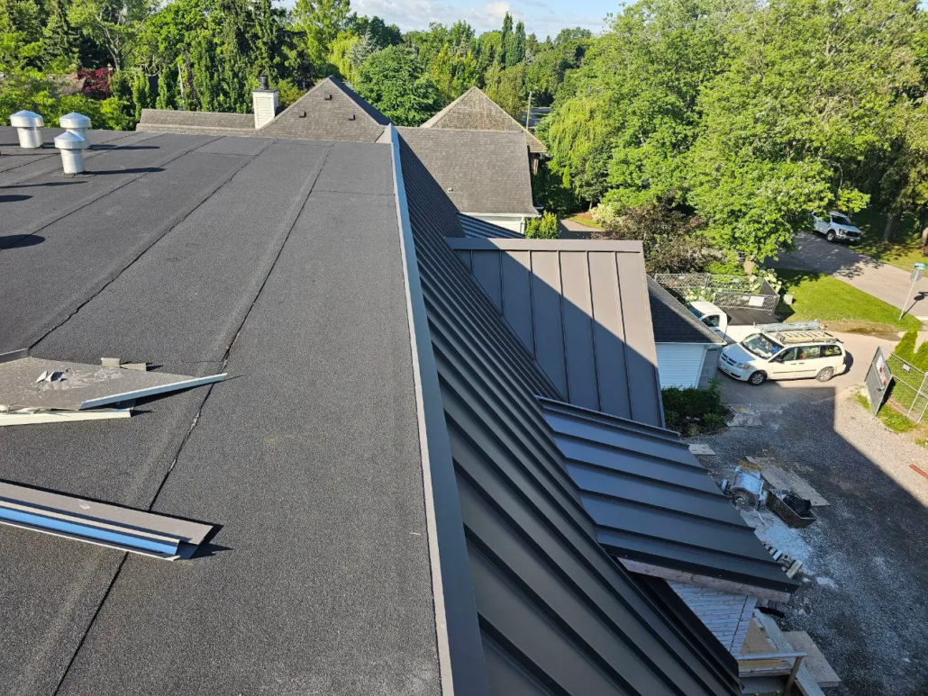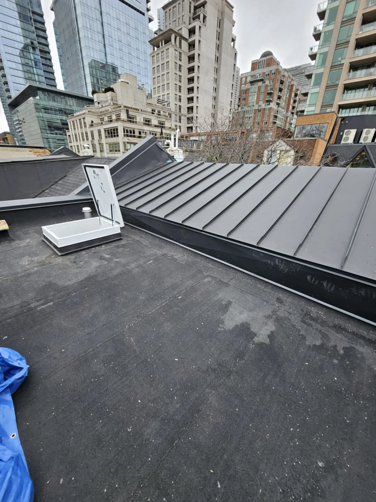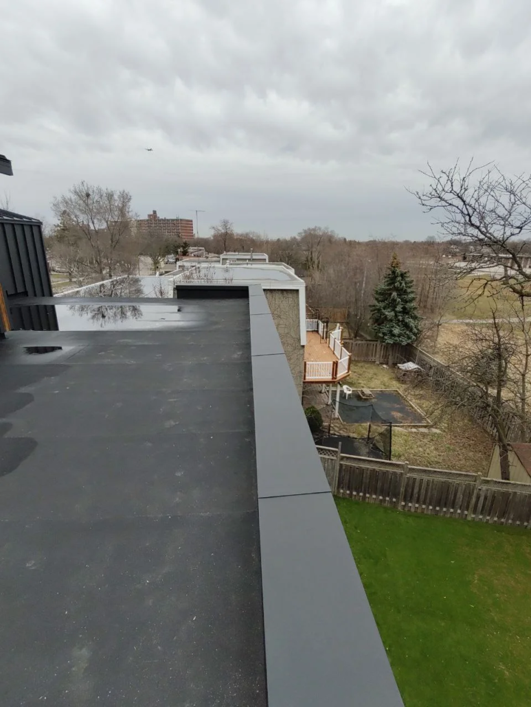 TORCH DOWN, EPDM, TPO & Parapet Capping services. Additional services include custom taper for slope correction, custom scupper and gutters.